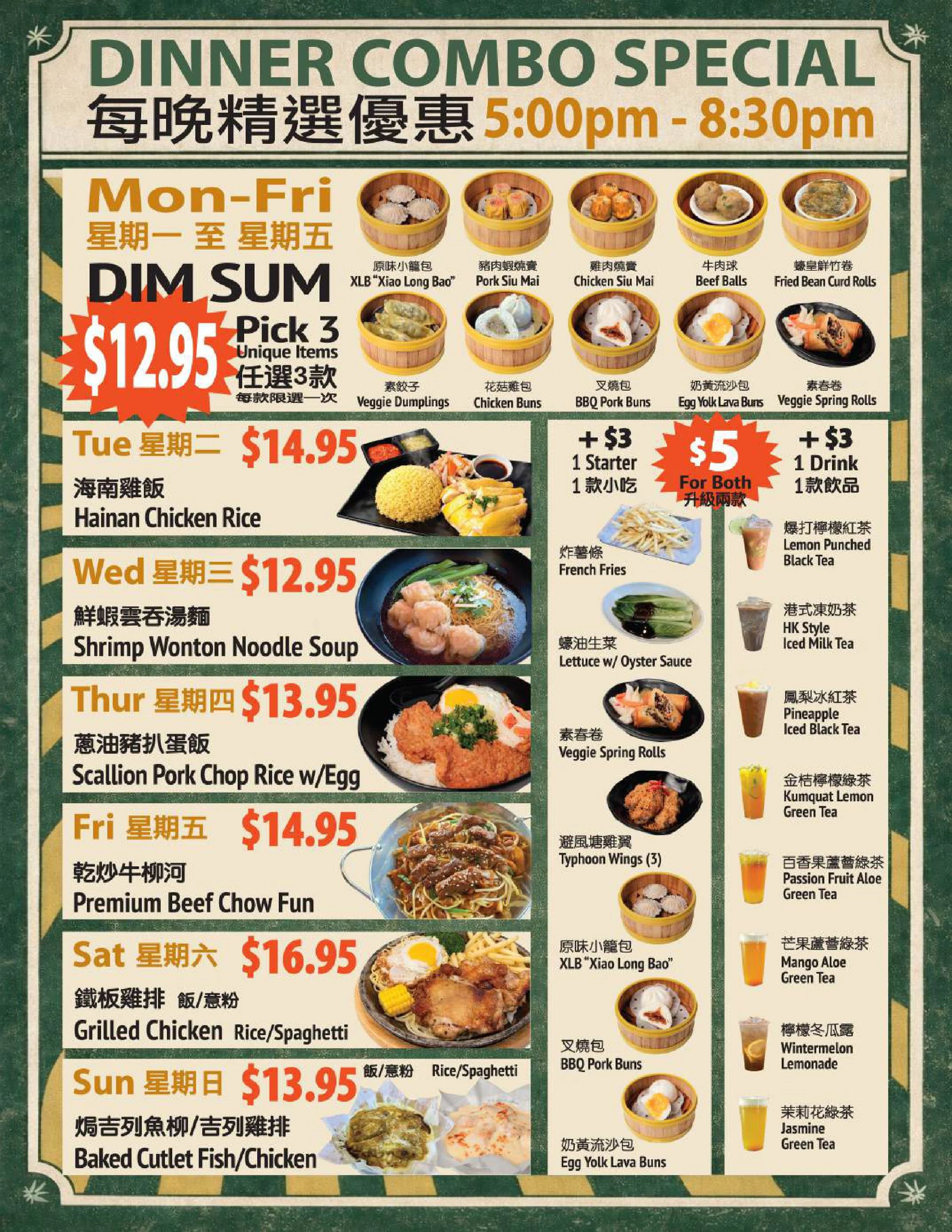 ENTREE MENU 主菜餐牌 ALL DAY DIM SUM MENU 全日餐牌 AFTERNOON TEA MENU 下午茶餐牌 DINNER COMBO MENU 每晚精選優惠 ORDER NOW 外賣 GET IT DELIVERED! DELIVERY (DOORDASH) 送餐